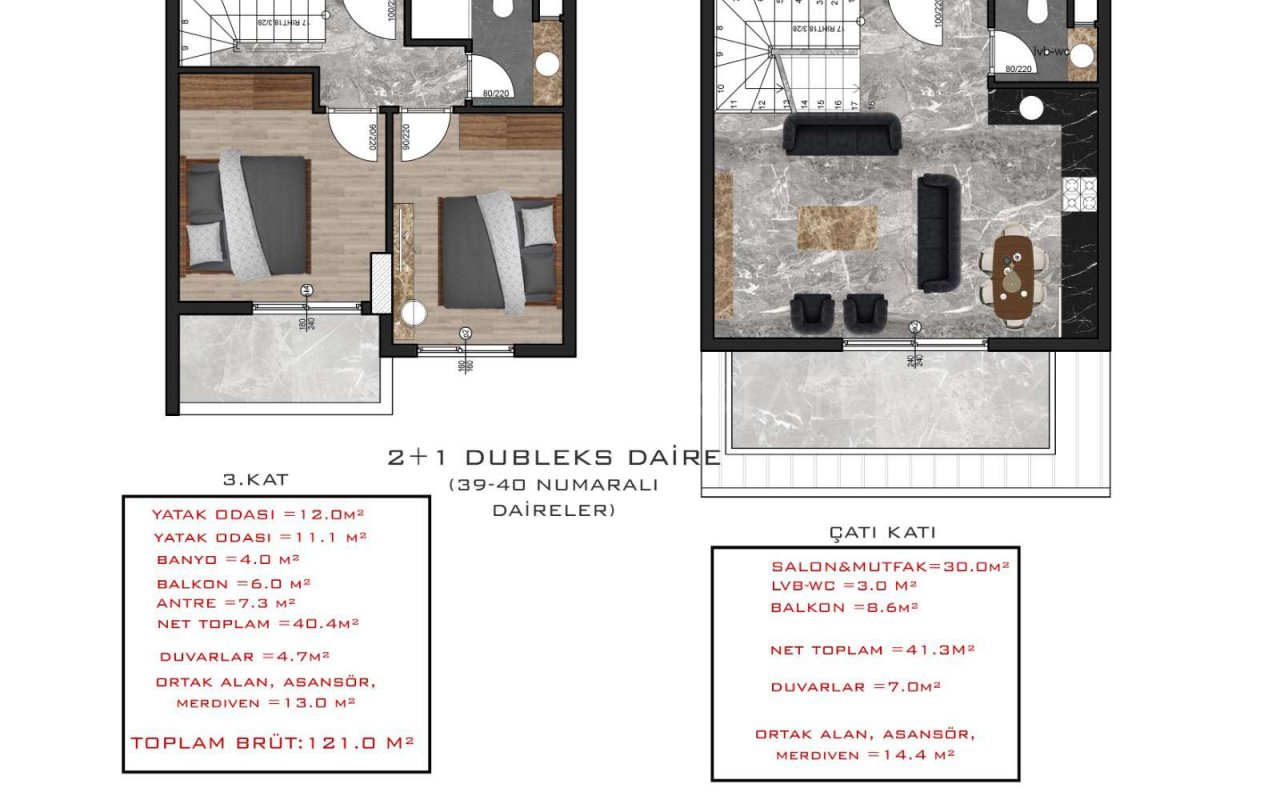Rooms : 1+1, 2+1, 3+1